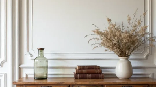Pour les mettre en scène, suivez la règle de trois : grouper les objets par nombre impair (3 ou 5) est souvent plus dynamique et agréable à l’œil. Jouez avec les hauteurs, les textures et les formes pour créer des « vignettes » décoratives sur une console, une étagère ou une table basse. Mais attention à ne pas surcharger : en décoration, l’art de savoir s’arrêter est tout aussi important que celui de savoir ajouter. L’objectif est de créer des points d’intérêt qui attirent le regard sans créer de pollution visuelle.